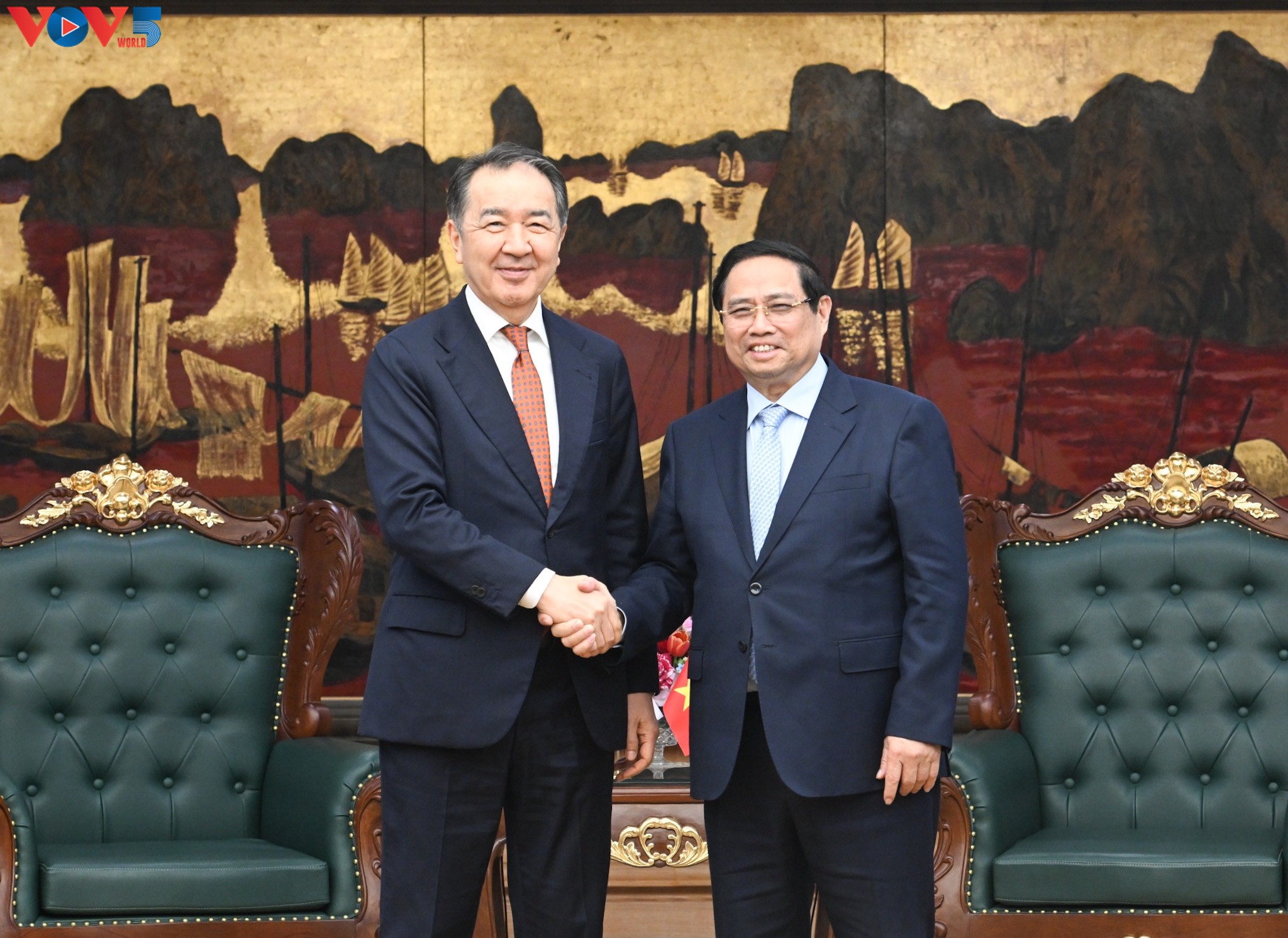 Mengenai kerja sama dengan Kazakhstan, PM Pham Minh Chinh meminta kedua belah pihak untuk terus mengkonkretkan dan mengimplementasikan secara aktif hasil kunjungan tingkat tinggi, serta mendorong kerja sama bilateral, khususnya di bidang ekonomi, perdagangan, dan investasi.