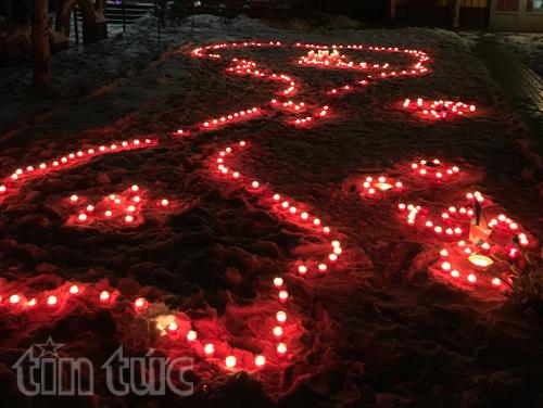 Menyalakan lilin berbentuk Negara Vietnam dalam upacara ini