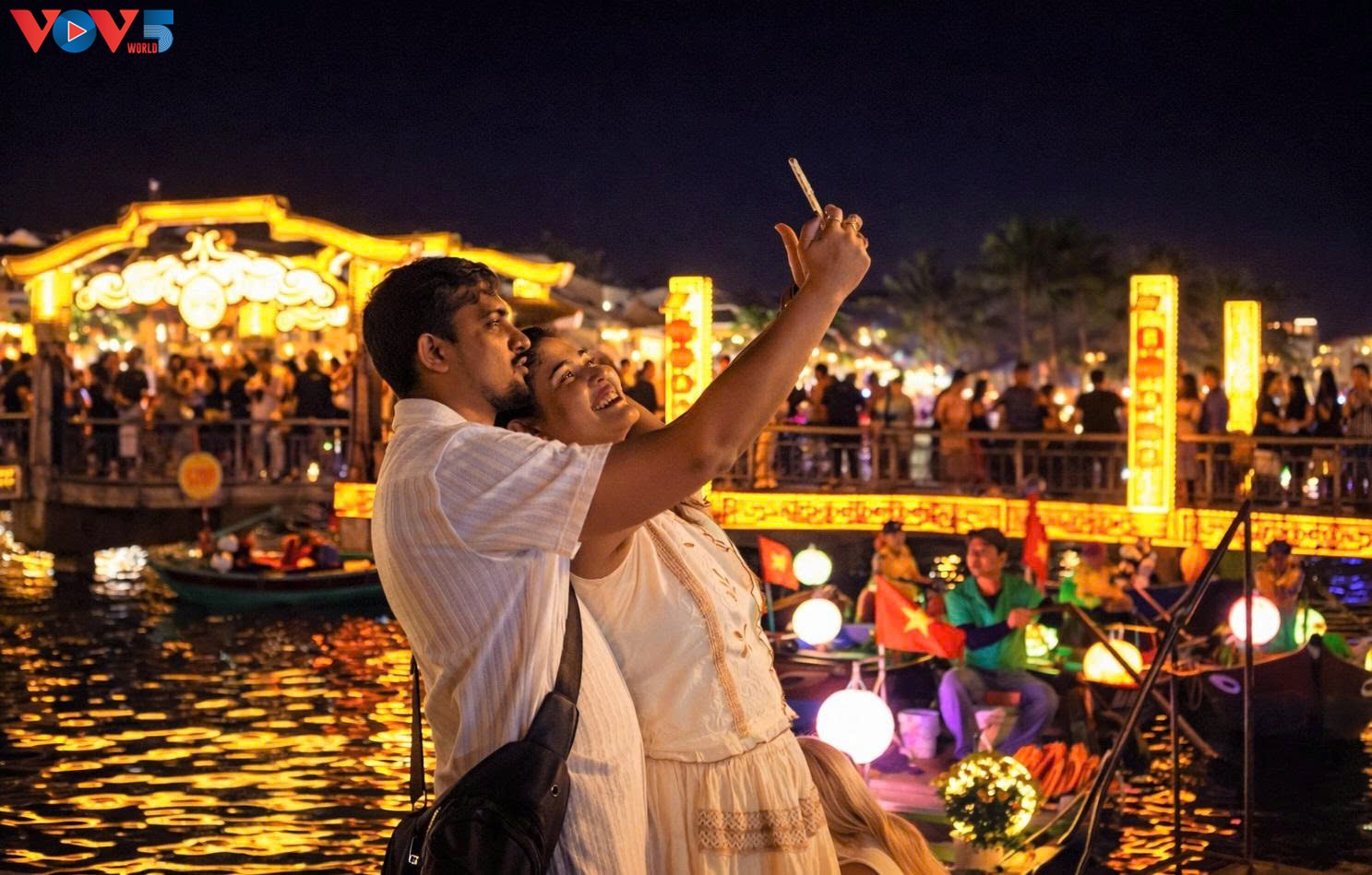 Di kota tua Hoi An, ribuan lampion menerangi ruang magis di sepanjang Sungai Hoai. Banyak kegiatan budaya dan seni serta permainan rakyat menarik banyak wisatawan.