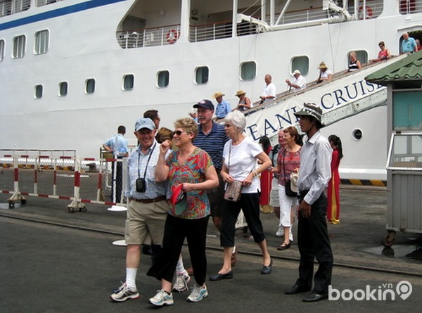 Wisman tiba di pelabuhan Tien Sa, Da Nang.