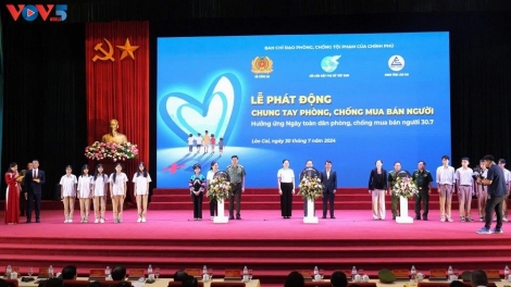 (VOVWORLD) - Upacara pencanangan menyambut : “Hari seluruh rakyat mencegah dan memberantas perdagangan manusia” tahun 2024 diselenggarakan pada Selasa pagi (30 Juli), di Provinsi Lao Cai untuk menanggapi “Hari Sedunia pencegahan dan pemberantasan perdagangan manusia” yang dicanangkan oleh Perserikatan Bangsa-Bangsa (PBB).