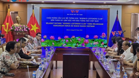 (VOVWORLD) - Pada Jumat sore (28 Juni), di Pusat Penyiaran Nasional, Jalan Quan Su nomor 58, Kota Hanoi, Wakil Direktur Jenderal Radio Suara Vietnam, Tran Minh Hung, Ketua Asosiasi Persahabatan Vietnam-Indonesia, menerima rombongan Borneo Listener Club dari Indonesia yang melakukan kunjungan kerja di Radio Suara Vietnam (VOV). Temu kerja yang dihadiri oleh Duta Besar Indonesia untuk Vietnam, Denny Abdi, berlangsung tepat pada kesempatan peringatan HUT ke-58 Program Siaran Bahasa Indonesia, VOV (30 Juni 1966 – 30 Juni 2024).