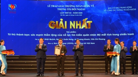 (VOVWORLD) -Upacara Penganugerahan Penghargaan Nasional ke-11 untuk Informasi Hubungan Luar Negeri tahun 2025 berlangsung pada Sabtu malam (12 Desember) di Kota Hanoi.