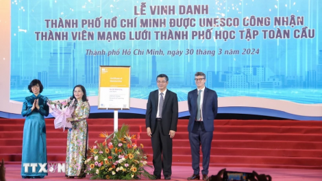 (VOVWORLD) - Upacara memuliakan Kota Ho Chi Minh yang diakui Organisasi Pendidikan, Pengetahuan dan Kebudayaan Perserikatan Bangsa-Bangsa (UNESCO) sebagai anggota “Jaringan kota belajar global” diselenggarakan pada Sabtu malam (30 Maret), di Kota Ho Chi Minh.