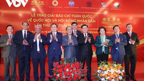 (VOVWORLD) - Upacara pemberian penghargaan pers nasional tentang Majelis Nasional (MN) dan Dewan Rakyat (atau Penghargaan Dien Hong) yang ke-2 tahun 2024 diselenggarakan pada Jumat malam (05 Januari), di Kota Hanoi. Ketua MN Vuong Dinh Hue menghadiri upacara tersebut.