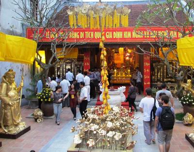 Di kuil Kim Ngan di jalan Hang Bac nomor 42, tepat memuja pendiri cabang kerajinan pada pesta ini juga berlangsung banyak aktivitas untuk memuliakan kejuruan tradisional. Yaitu pameran yang memajang produk-produk yang diciptakan oleh para artisan di jalan Hang Bac dan para artisan pande emas yang berasal dari desa-desa Dinh Cong, kabupaten Hoang Mai, kota Hanoi, Chau Khe, Dai Bai dari provinsi Bac Ninh. Disamping produk-produk tukang emas juga ada banyak produk artistik, perlakan dari desa Ha Thai, kabupaten Thuong Tin, kota Hanoi, Chang Son, kabupaten Thach That, kota Hanoi. Di sini juga berlangsung banyak pameran yang isinya memperkenalkan situs peninggalan sejarah kuil Kim Ngan, situs peninggalan yang mendapat pengakuan tingkat nasional. Kuil Kim Ngan dibangun pada zaman purna dinasi Le akhir abad ke-15 dan awal abab ke-16 untuk memuja To Bach Nghe ( pendiri 100 kejuruan) di sektor kota kuno.