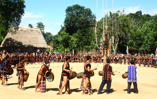 Harus sebulan selamanya setelah Hari Raya Tahun Baru Tradisional Imlek (Hari Raya Tet) baru tiba “Pesta budaya-olahraga” yang diadakan oleh kecamatan, tapi para anggota muda dalam tim penabuh bonang dukuh Pu Hue, kecamatan Ea Ktur, kabupaten Chu Quynh, provinsi Dac Lac tetap mengusahakan waktu pada malam hari untuk melakukan latihan. Terus tiba waktunya, mereka hadir di rumah komunitas dukuh untuk berlatih kembali irama-irama bonang yang baru mereka pelajari. Mereka melakukan latihan secara asyik dan sangat sedar sendiri, suara bonang bergema secara meriah dengan melodi kadang-kadang cepat dan kadang-kadang lambat. Anak yang bernama Y Sun E’Ban, satu anggota tim penabuh bonang ini memberitahukan: “Tujuh orang kami baru belajar selama 2 bulan ini saja, tapi semua orang belajar secara sangat cepat. Kalau mendapat undangan, kami akan melakukan pertunjukan, kami sudah 3 kali melakukan pertunjukan, diantaranya ada sekali di kabupaten dan 2 kali lainnya di kecamatan Drai Bhang”.