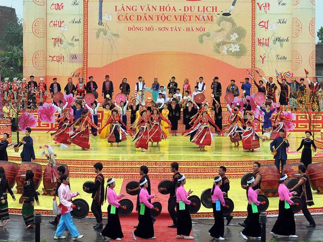 Dari tanggal 1-28 Februari 2018, Perkampungan Budayaan dan Wisata Setnis-Etnis Vietnam di Kotamadya Son Tay, Kota Hanoi telah berlangsung aktivitas menyambut musim semi tahun 2018 dengan tema “Warna-warni musim semi di seluruh penjuru Tanah Air”. Yang ikut serta dalam pesta ini, ada 200 orang lebih yang adalah mewakili para sesepuh dukuh dan kepala dukuh yang tipikal, cendekiawan, intelektual dan artisan dari 21 komunitas etnis asal 14 provinsi dan kota yang mewakili etnis-etnis dan daerah di seluruh Vietnam. Dalam rangka pesta ini, pada tanggal 24 Februari, Presiden Negara Vietnam, Tran Dai Quang telah datang mengucapkan selamat Hari Raya Tahun Baru Tradisional Imlek atau Hari Raya Tet kepada komunitas etnis-etnis Vietnam, menunjukkan bahwa dalam sepanjang sejarah, 54 etnis sesaudara telah dengan gembira bersama-sama berat sama dipikul, ringan sama dijinjing, bersatu padu membawa bangsa mengatasi semua jeram dan riam, menggembleng tekad dan semangat Vietnam, kebudayaan dan negeri Vietnam. Presiden Tran Dai Quang percaya dan menginginkan agar para sesepuh dukuh, kepala dukuh, artisan, pemuka agama dan orang berprestise yang mewakili etnis-etnis dan daerah-daerah terus aktif melakukan sosialisasi, melakukan dengan baik pekerjana konservasi, menjaga dan mengembangkan nilai kebudayaan tradisional bangsa, turut membangun kampung halaman dan Tanah Air yang makmur dan kuat agar warna-warni musim semi disebarkan ke seluruh penjuru Tanah Air.