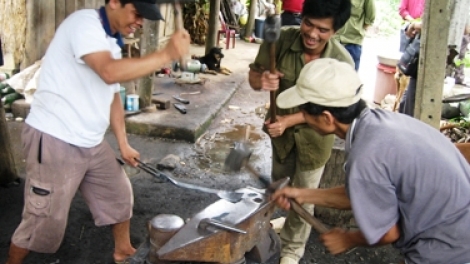 (VOVworld)- Dari lintasan Ma Phuc, menyusuri jalan raya nomor 3 kira-kira 10 kilometer, rumah-rumah panggung rakyat etnis minoritas Nung muncul di tenngah-tengah asap dan embun. Sejak awal jalan telah kedengaran suara orang yang menempa besi, nampaknya ingin memperkenalkan kepada semua wisatawan tentang satu kejuruan tradisional di sini yaitu kejuruan menempa besi. Dalam acara kita pekan ini, penyiar… menyampaikan sebuah reportase yang berjudul “Kejuruan menempa besi rakyat etnis minoritas Nung di provinsi Cao Bang”.