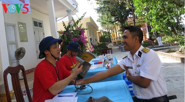 Pertama-tama, Bank darah segar dibentuk di lima pulau, yaitu Song Tu Tay, Nam Yet, Son Ca, Sinh Ton dan Truong Sa, telah mendapat dukungan tinggi dari para komandan, prajurit dan nelayan di pulau-pulau ini. Letnan Kepala Tran Quoc Hiep, sekarang bekerja di pulau Son Ca memberitahukan: “Pembentukan bank darah segar ini sangat berguna untuk kepulauan Truong Sa. Pertama-tama, untuk menjamin kesehatan prajurit tentara, dalam proses darurat pengobatan, kalau ada masalah bisa segera menerima sumber darah. Kedua ialah sumber darah itu digunakan dalam pengobatan darurat dan pengobatan untuk para nelayan yang menangkap ikan di kepulauan Truong Sa ini, kalau mengalami kecelakaan di laut, akan dibawa ke klinik di pulau untuk diobati. Kalau sumber darah segar di sini kurang, maka para komandan dan prajurit akan siap memberikan donor darah secepat mungkin”.