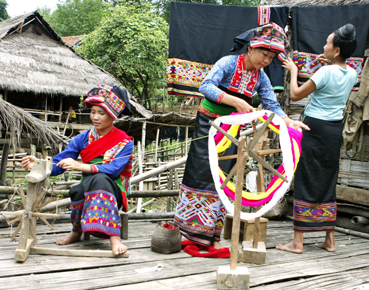 Para warga di Dukuh Chi menenun kain ikat. (Foto: www.vietnamtourism.com)