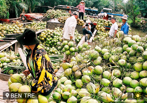 Terhadap para warga seperti saudara Tam Trung dan saudari Thu Nguyet, pohon kelapa berkaitan erat dengan kehidupan. Ketika bertemu dengan saudara Tam Trung dan bapak Tu Dang, kami mendapat informasi bahwa Propinsi ini mempunyai satu cabang industri purna kelapa. Pohon kelapa dimanfaatkan oleh para warga propinsi Ben Tre secara berhasil-guna. Dari akar-akar pohon kelapa, pohonnya, batok kelapa sampai daun kelapa....semuanya bisa diekspor dan dibuat menjadi kuliner. Semua produk yang dibuat dari kelapa di Propinsi Ben Tre telah dipasarkan di 68 negara dan teritori, saban tahun menghasilkan 200 juta USD kepada Propinsi Ben Tre, menduduki 40% total nilai ekspor seluruh propinsi.