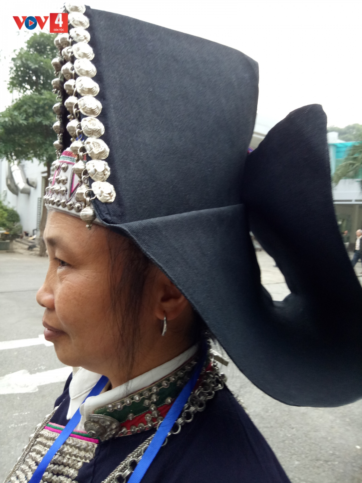 Topi dari wanita etnis minoritas Pa Di yang berbentuk atap rumah membawa keindahan yang unik |