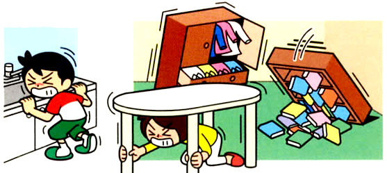 1. Kalau Anda sedang berada di dalam satu gedung, carilah tempat berlindung, bisa masuk ke bawah meja, kalau tak ada meja, carilah satu sudut dan tembok tinggi untuk bersembunyi. Kalau Anda sedang tidur, berbaring di atas ranjang dan menggunakan bantal untuk melindungi kepala . Anda baru lari bersembunyi ke belakang pintu (kalau pintu itu terjamin tahan tekanan). Tinggallah di dalam rumah sampai semua susulan gempa bumi berhenti , setelah itu baru keluar dari rumah.