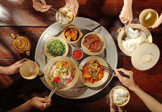 Bagi orang Vietnam, ada beberapa prinsip dasar dalam jamuan makan yang sudah ada sejak lama dan dilestarikan hingga dewasa ini. Sebelum mulai makan, yang lebih muda harus mengajak yang lebih tua makan dengan ajakan, misalnya “Aku mengajakmu makan, Ayah dan Ibu” dan menunggu yang lebih tua makan terlebih dahulu. Selain itu, anak cucu juga sering duduk di dekat penanak nasi agar bisa mengambilkan nasi untuk para anggota keluarga. Menggunakan sumpit untuk mengambil makanan harus terampil, menghindari makanan tumpah; tidak menimbulkan suara bising saat mengunyah; jangan makan terlalu cepat atau terlalu lambat. Setelah selesai makan, sumpit harus diletakkan di atas nampan atau mangkuk, dengan ujung sumpit menghadap ke dalam nampan. Selain itu, bergantung pada masing-masing keluarga dan daerah, ada prinsip makan yang berbeda-beda.