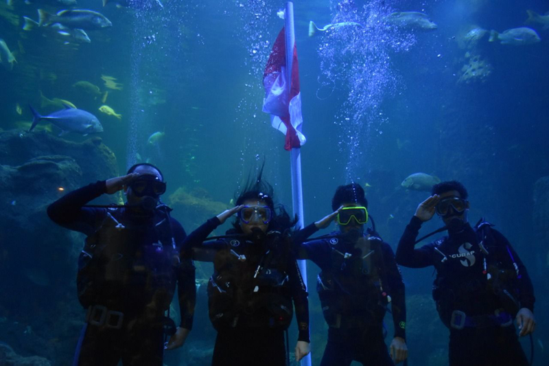 Mengibarkan bendera di bawah laut merupakan acara pengibaran bendera yang tidak kurang di negara ribuan pulau ini.