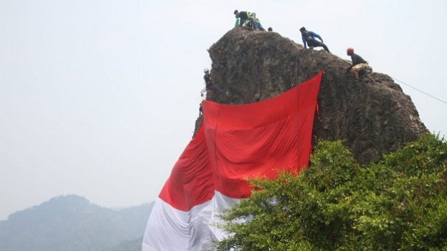 Memperingati HUT RI ke-74 (17/8/1945-17/8/2019), ribuan warga Provinsi Bogor, Jawa Barat telah mengibarkan bendera merah putih di puncak gunung Munara, tinggi-nya 350 M dari permukaan air laut