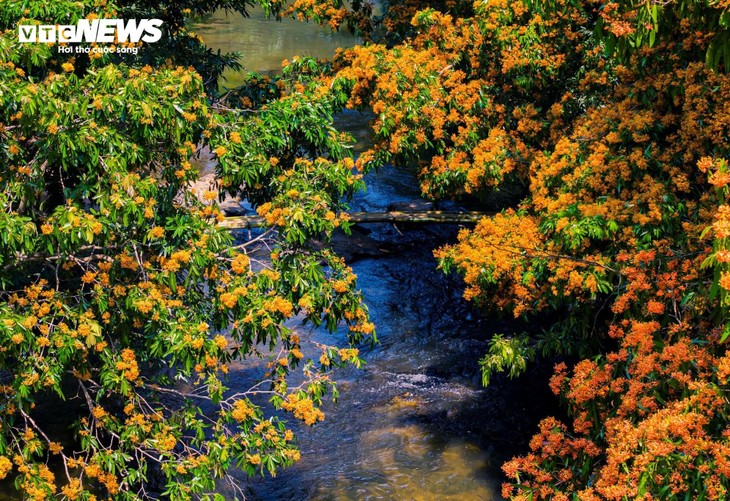 Pada Maret, anak sungai Ta Ma (Kecamatan Vinh Thinh, Provinsi Gia Lai) mengenakan baju baru - warna orange dari bunga "trang" hutan.