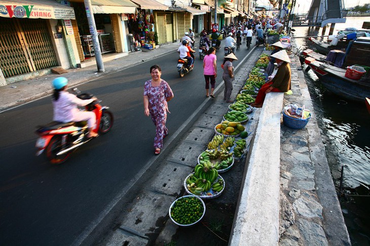 Saudara Bui Van Tham di Kabupaten Vung Liem, Provinsi Vinh Long memberitahukan bahwa jadwal perjalanan air dari kebun ke Dermaga Binh Dong memakan waktu 12 jam. Dia biasanya menjual buah-buahan.