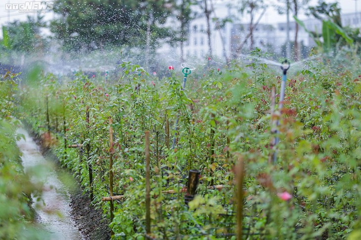 Penanam bunga di Desa Tay Tuu, Distrik Bac Tu Liem memaneni mawar untuk pasar.