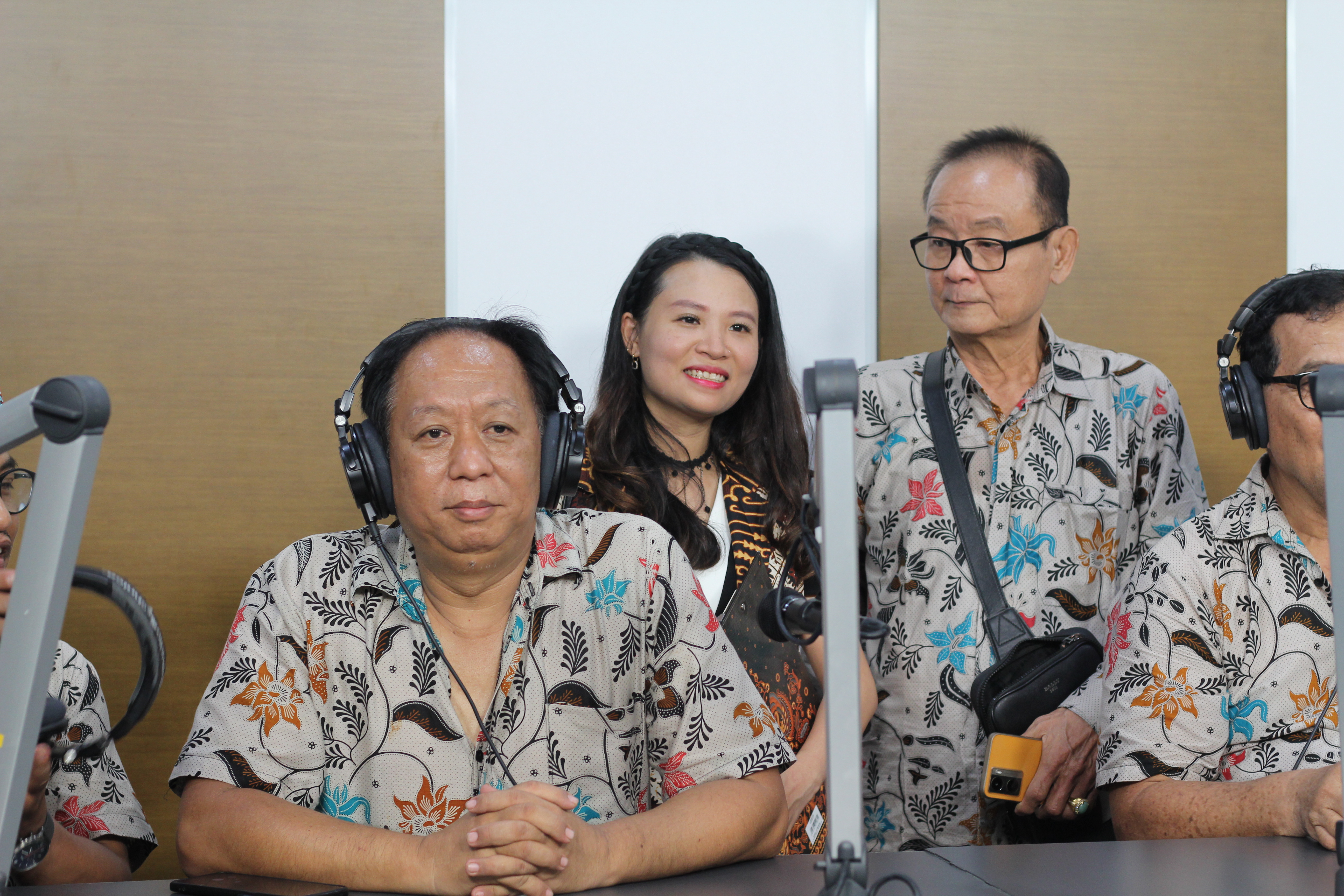 Wakil Direktur Jenderal VOV, Ketua Asosiasi Persahabatan Vietnam-Indonesia, Tran Minh Hung menyampaikan hadiah dan memfoto bersama dengan para pendengar Indonesia.