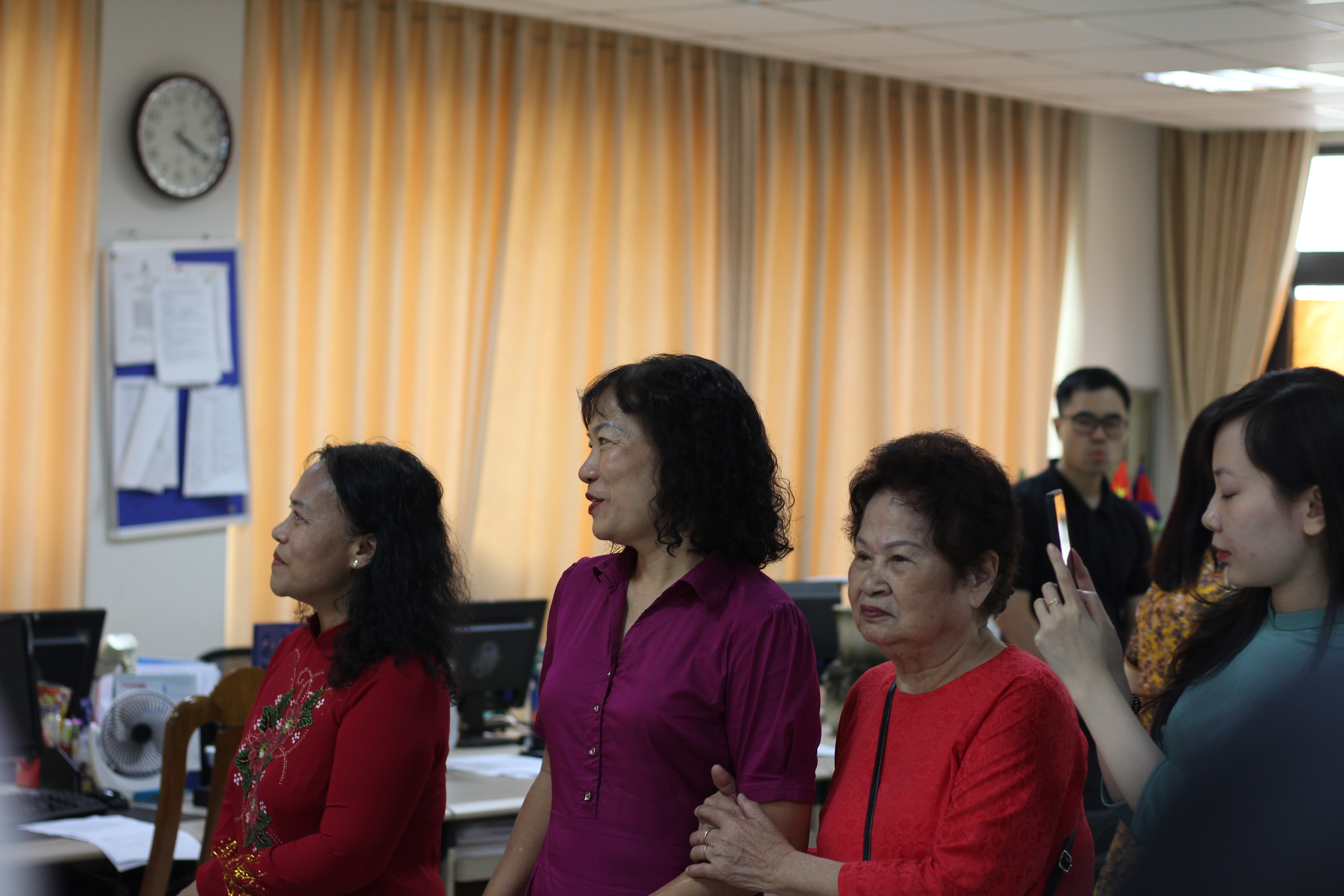 Rombongan pendengar juga diajak untuk mengunjungi tempat kerja program-program siaran 12 bahasa dan Studio di VOV5.