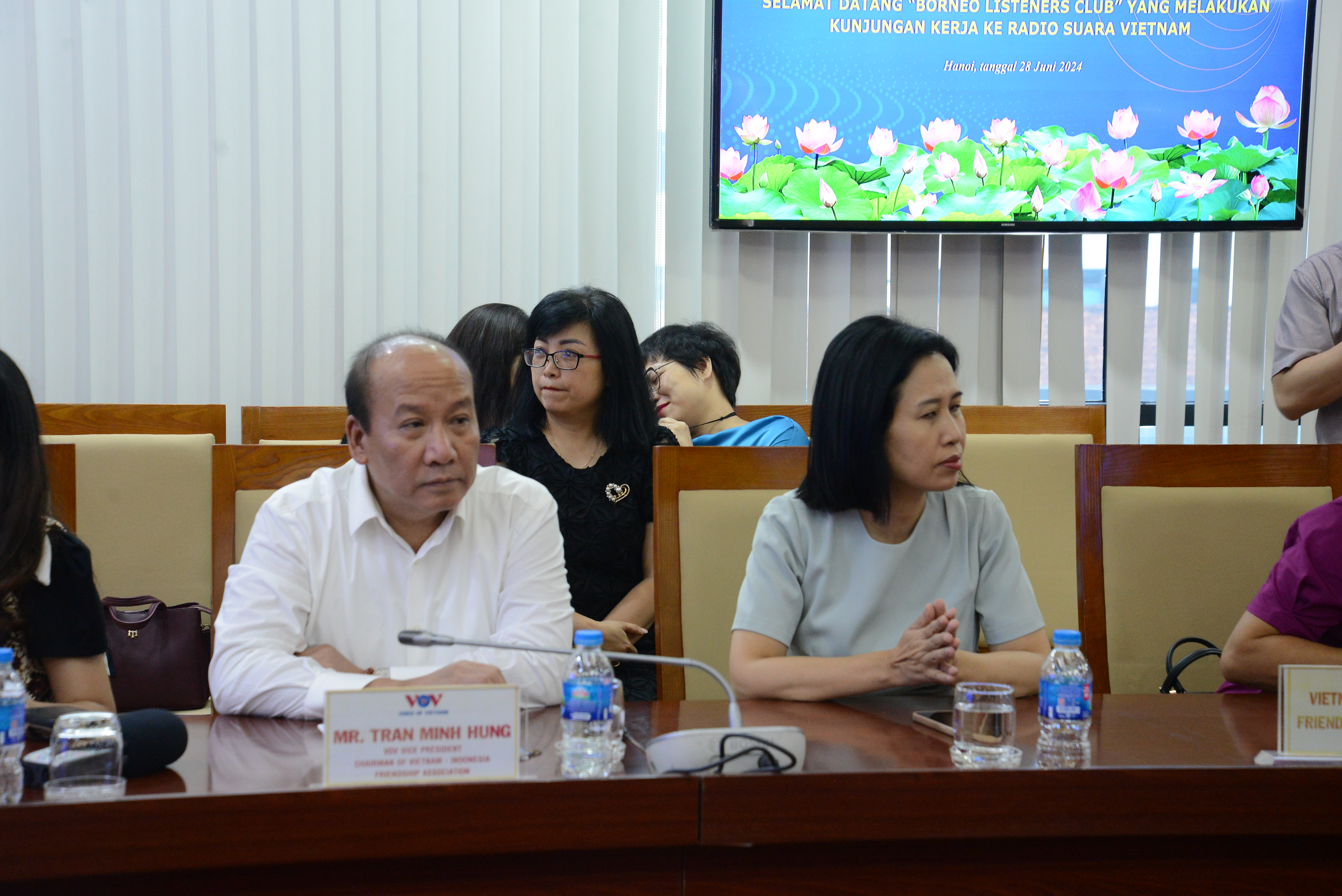 Pada Jumat sore (28 Juni), di Pusat Penyiaran Nasional, Jalan Quan Su nomor 58, di Kota Hanoi, Wakil Direktur Jenderal VOV, Ketua Asosiasi Persahabatan Vietnam-Indonesia, Tran Minh Hung, menerima rombongan pendengar Borneo Listeners Club yang melakukan temu kerja di VOV. Pertemuan ini dihadiri oleh Duta Besar Luar Biasa dan Berkuasa Penuh Indonesia untuk Vietnam, Denny Abdi.
