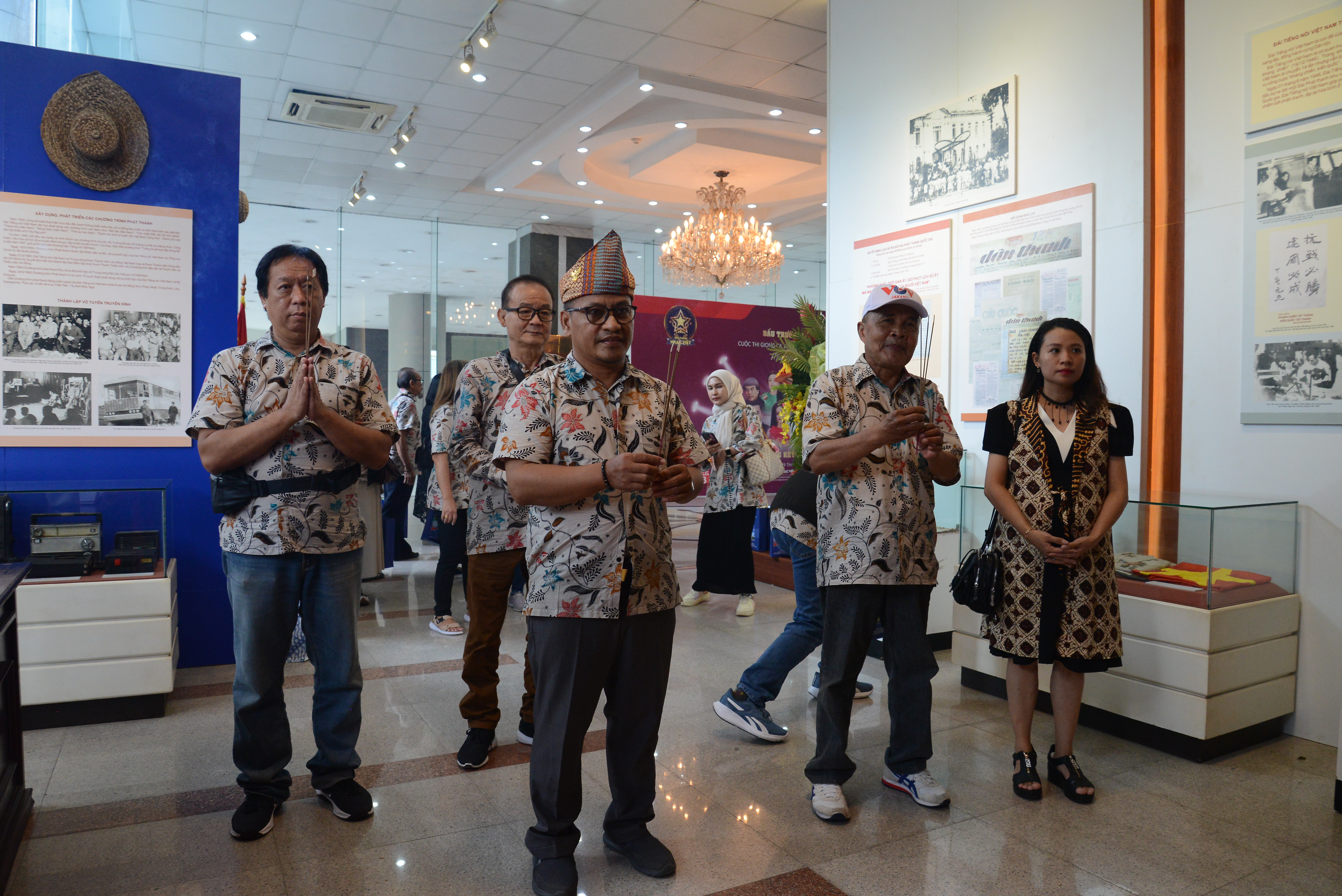 Rombongan pendengar Indonesia membakar hio di Ruang peringatan Presiden Ho Chi Minh dan mengunjungi Ruang tradisi VOV di Pusat Penyiaran Nasional (Jalan Quan Su nomor 58, Hanoi)