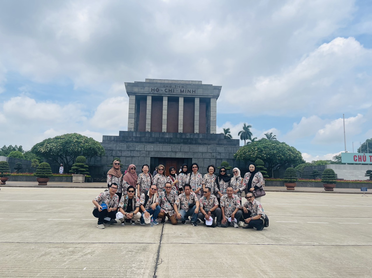 Rombongan pendengar mengunjungi Mousoleum Presiden Ho Chi Minh dan memfoto di Lapangan Ba Dinh, di depan pintu Mousoleum.
