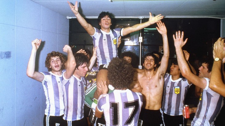 Maradona bersama dengan para rekan satu timnya setelah memenangkan Piala Dunia FIFA U-20 pada tahun 1979. Foto: Allsport / Getty Images |