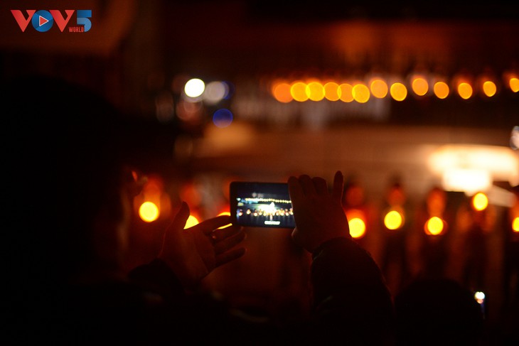 Pertunjukan seniman seruling bambu Dinh Quang Vu dan paduan suara “Angin Hijau” membawakan lagu “You Raise Me Up”.