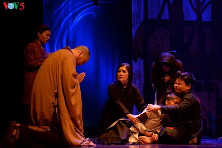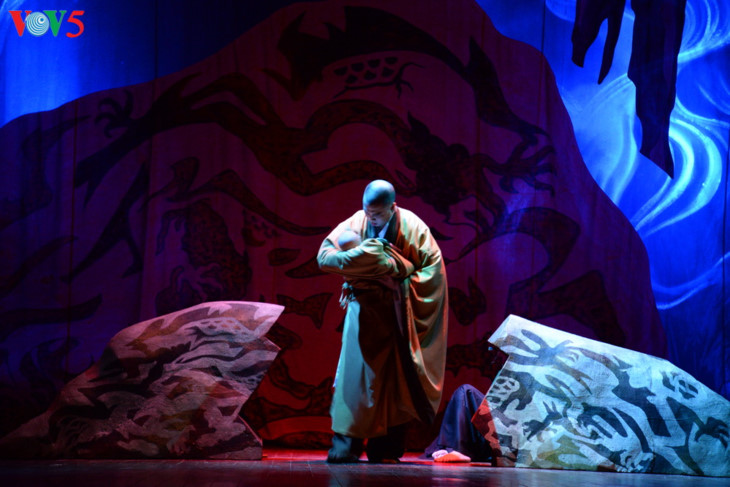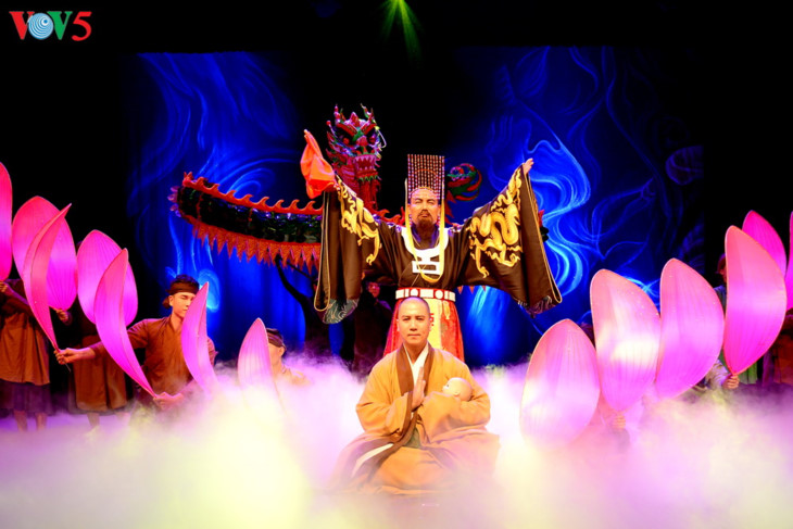 Lakon "Legenda gundukan Naga Dusun" berdasarkan pada skenario karya Professor Muda, Doktor Nguyen The Ky. Ini adalah kisah berdasarkan legenda rakyat tentang lahirnya Raja Ly Cong Uan – Raja pendiri negara dari Dinasti Ly. |