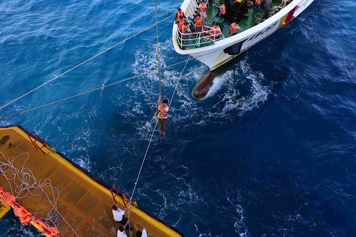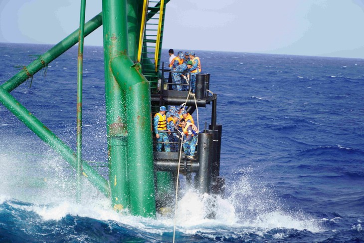 Kapal KN 261 melakukan tugas menyapa dan memberikan bingkisan kepada para komandan dan prajurit di Anjungan-Anjungan di dangkalan Phuc Tan, Ba Ke, Que Duong, Huyen Tran dan dua kapal patroli.