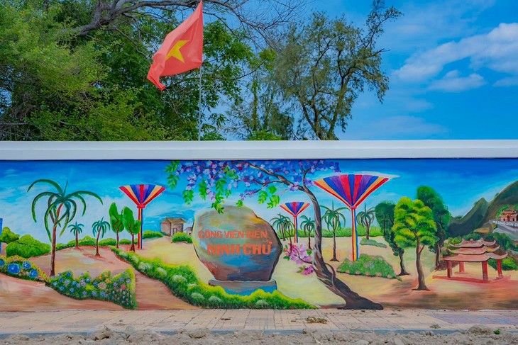Sekarang ini, jalan di mana ada mural ini telah menjadi destinasi yang menarik wisatawan untuk berkunjung dan berfoto. Foto: FB Du lich Ninh Thuan