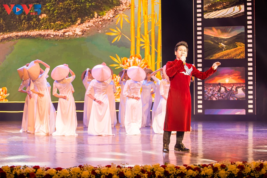 Penyanyi Trong Tan mengumandangkan lagu “Vietnam – kampung halaman ku” (Foto: VOV) |