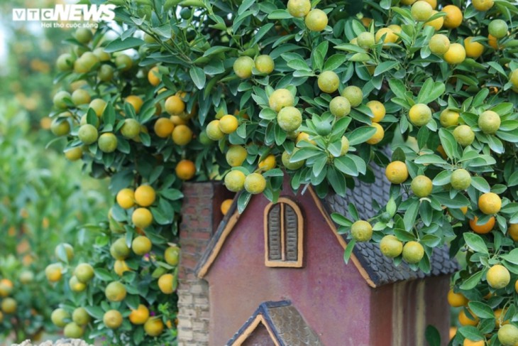 Pohon-pohon kumquat yang dipadukan dengan pola rumah kuno, kuil desa, balai desa... adalah karya yang paling unik dan ditunggu-tunggu oleh banyak orang.