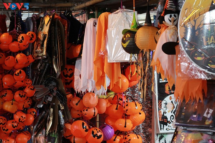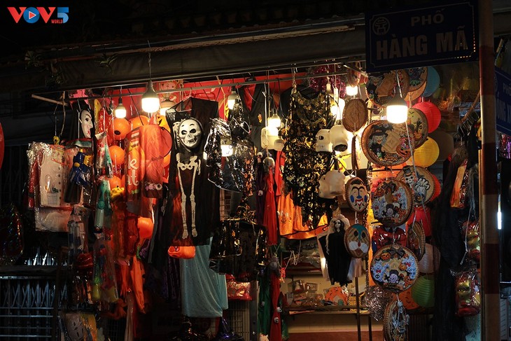 Jalan Hang Ma (Distrik Hoan Kiem), yang selama bertahun-tahun ini dikenal sebagai "pusat" penjualan dekorasi, saat ini dipenuhi dengan segala jenis produk untuk festival Halloween mendatang (31 Oktober).
