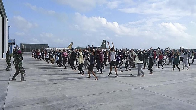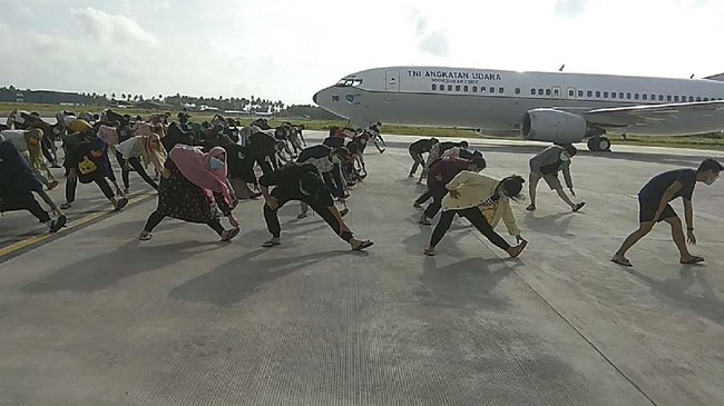 Mereka dievakuasi dan dikarantinakan dalam pangkalan militer di Pulau Natuna, Provinsi Riau selama 14 hari sebelum kembali ke rumah-nya.