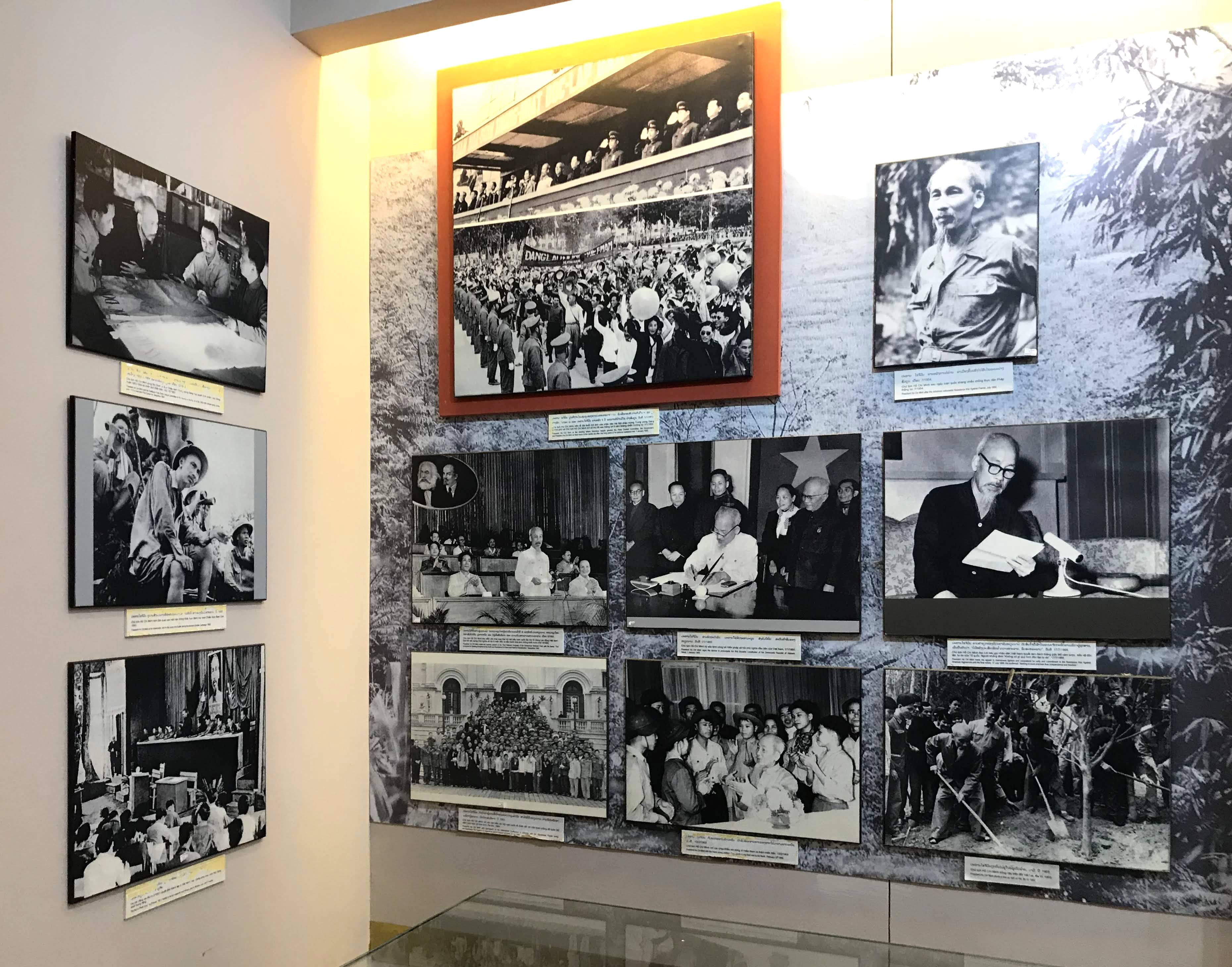 Beberapa foto tentang zona memamerkan foto dan benda tentang Presiden Ho Chi Minh
