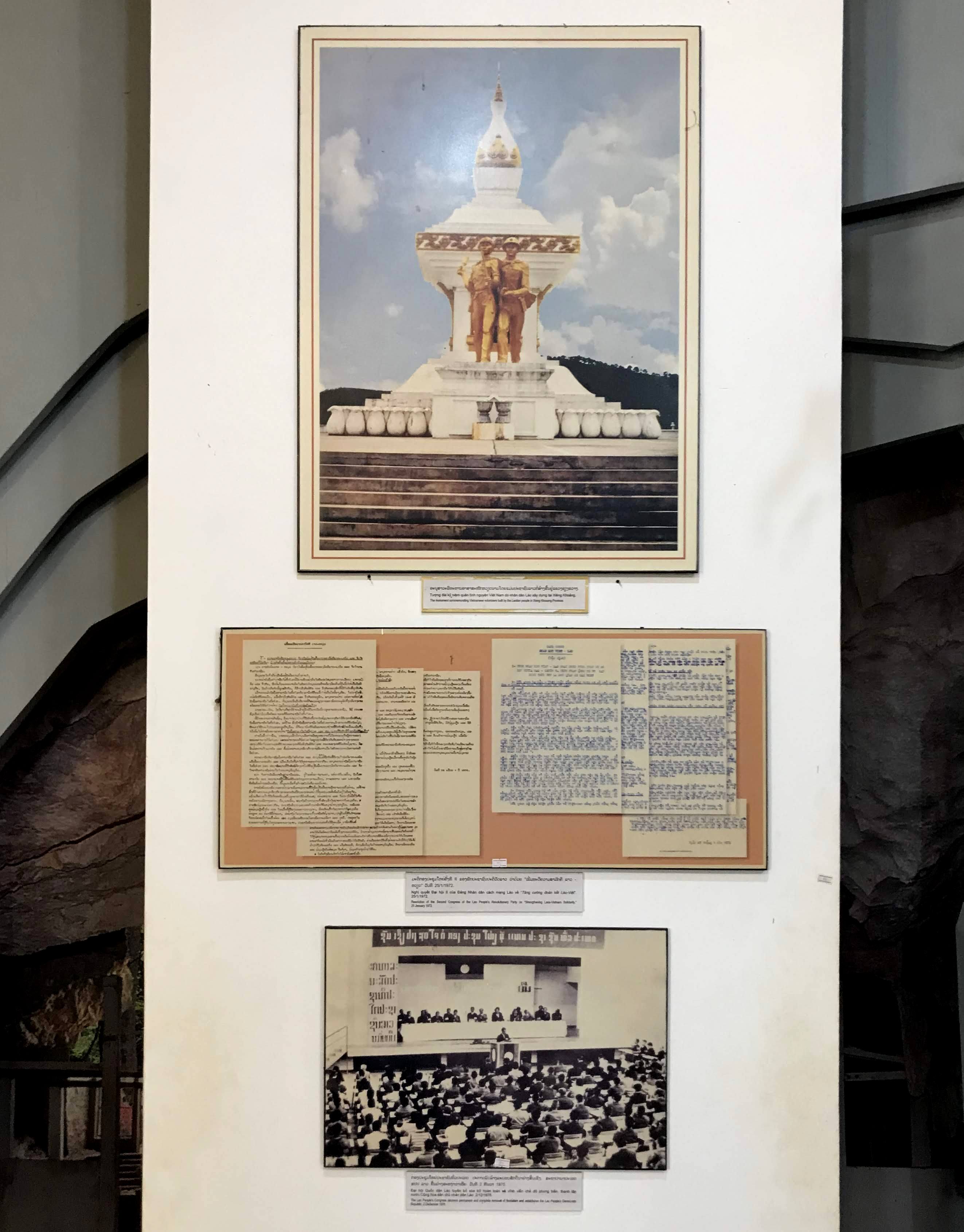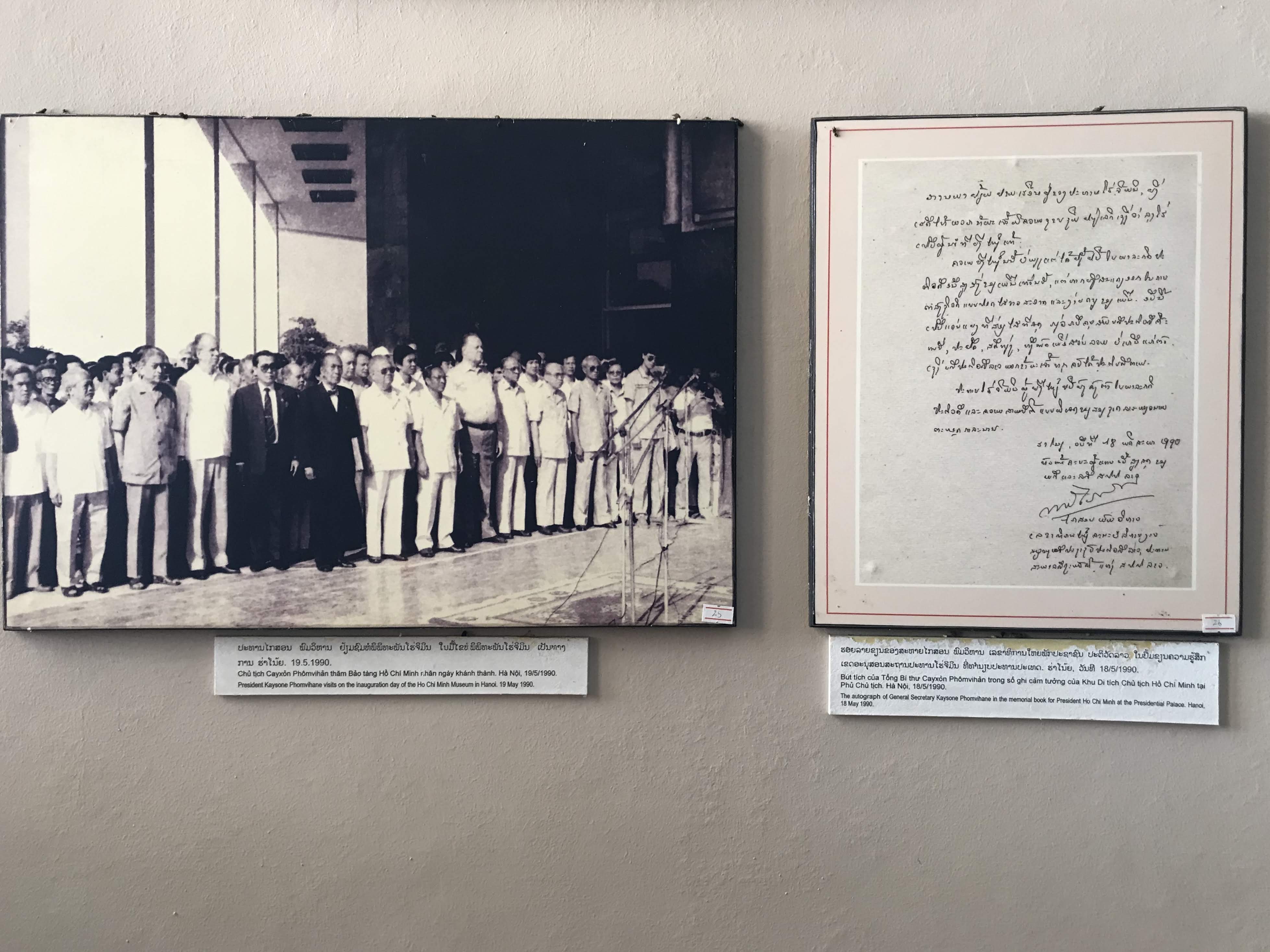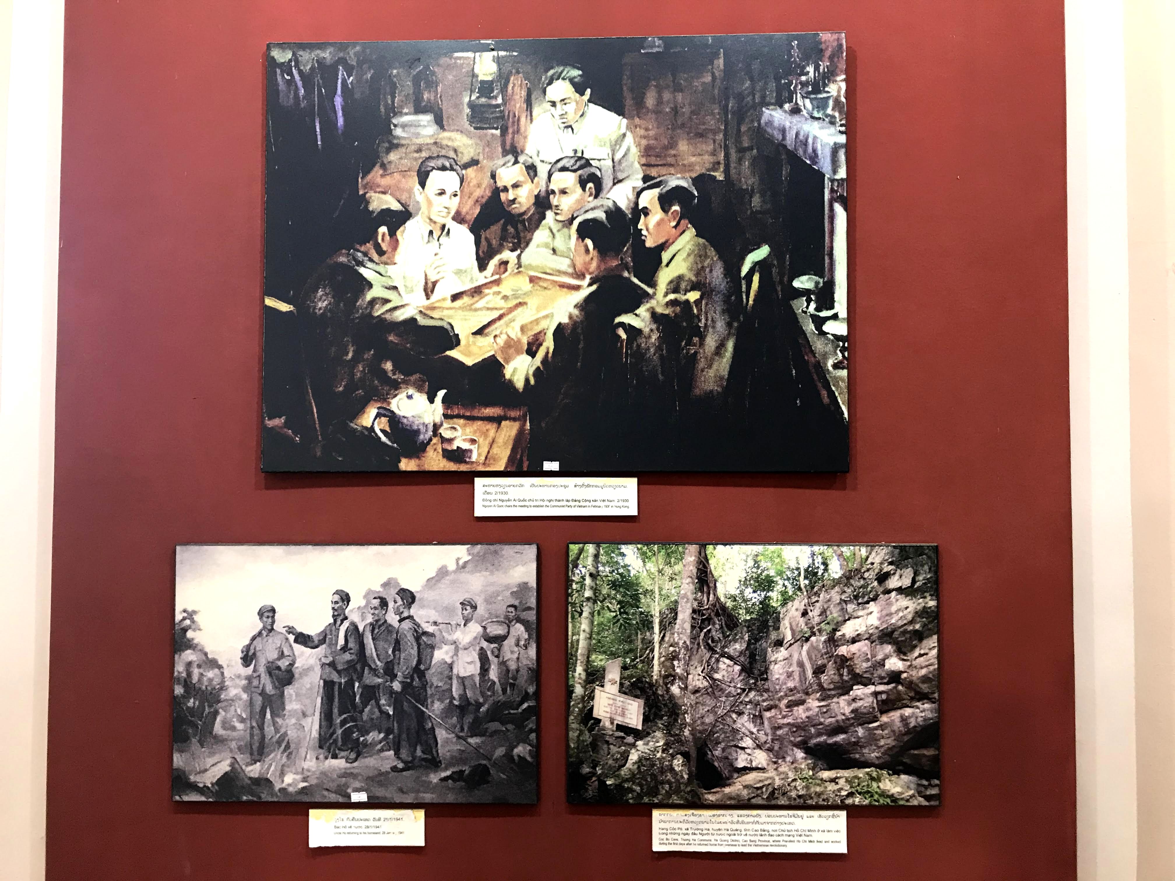 Di lantai kedua, ada banyak foto tentang bendera nasional Vietnam-Laos, foto tentang pertemuan antara Presiden Ho Chi Minh dengan Ketua Kaysone Phomvihane dan genderang perunggu.