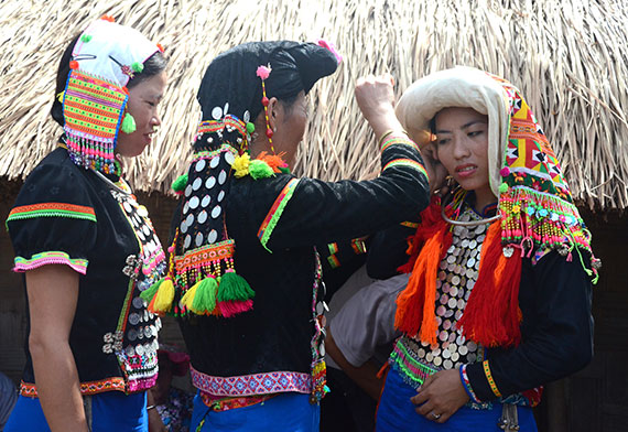 Warga etnis Si La menggunakan banyak asesori pada pakaian tradisionalnya