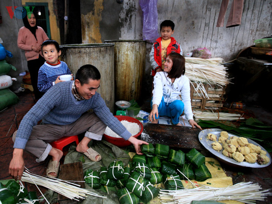 | Seluruh keluarga ikut serta membuat Kue Chung |