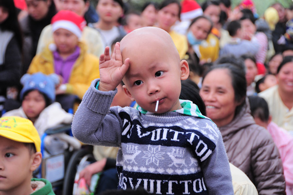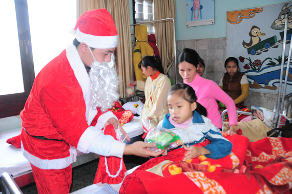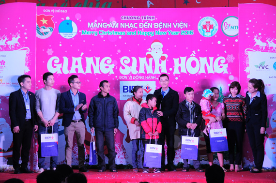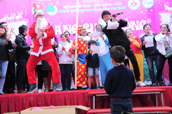 (VOVworld) - Pada saat semua orang sedang bergembira dalam suasana menyongsong Hari Natal dan Tahun Baru 2016, anak-anak pasien di Rumah Sakit Anak-Anak Pusat di kota Hanoi tetap menjalani berbagai pengobatan dan terapi. Untuk membawa suasana Natal dan Tahun Baru kepada anak-anak tersebut, baru-baru ini di Rumah Sakit Anak-Anak Pusat telah diadakan program membawa musik ke Rumah sakit dengan tema “Hari Natal Merah”. Aktivitas amal ini telah memberikan berbagai bingkisan material dan spirituil kepada kira-kira 1.500 anak-anak dan keluarga yang mengalami kesulitan untuk menyambut satu musim Natal yang aman sentosa dan tenteram.