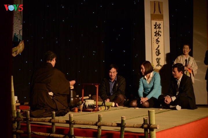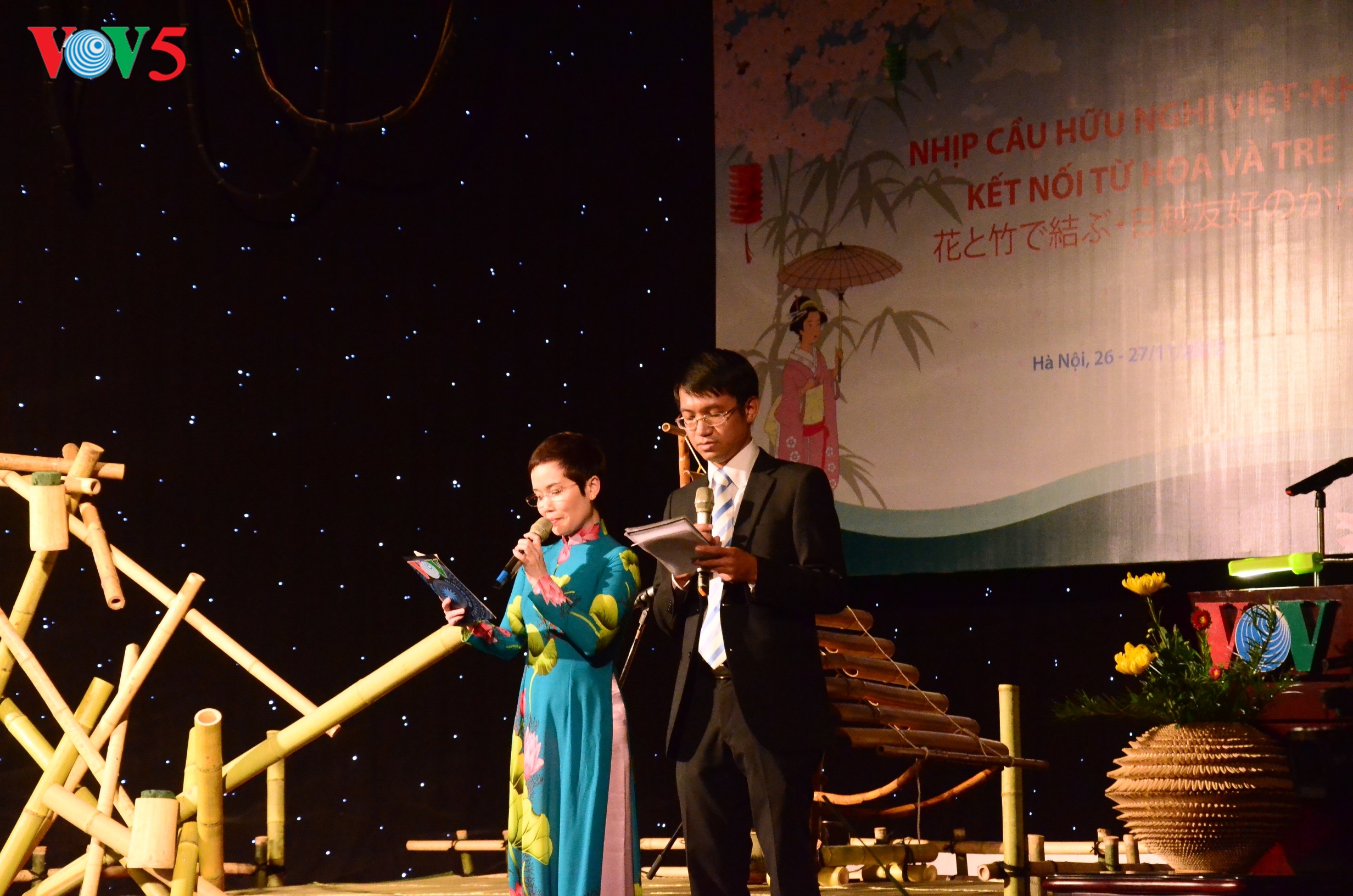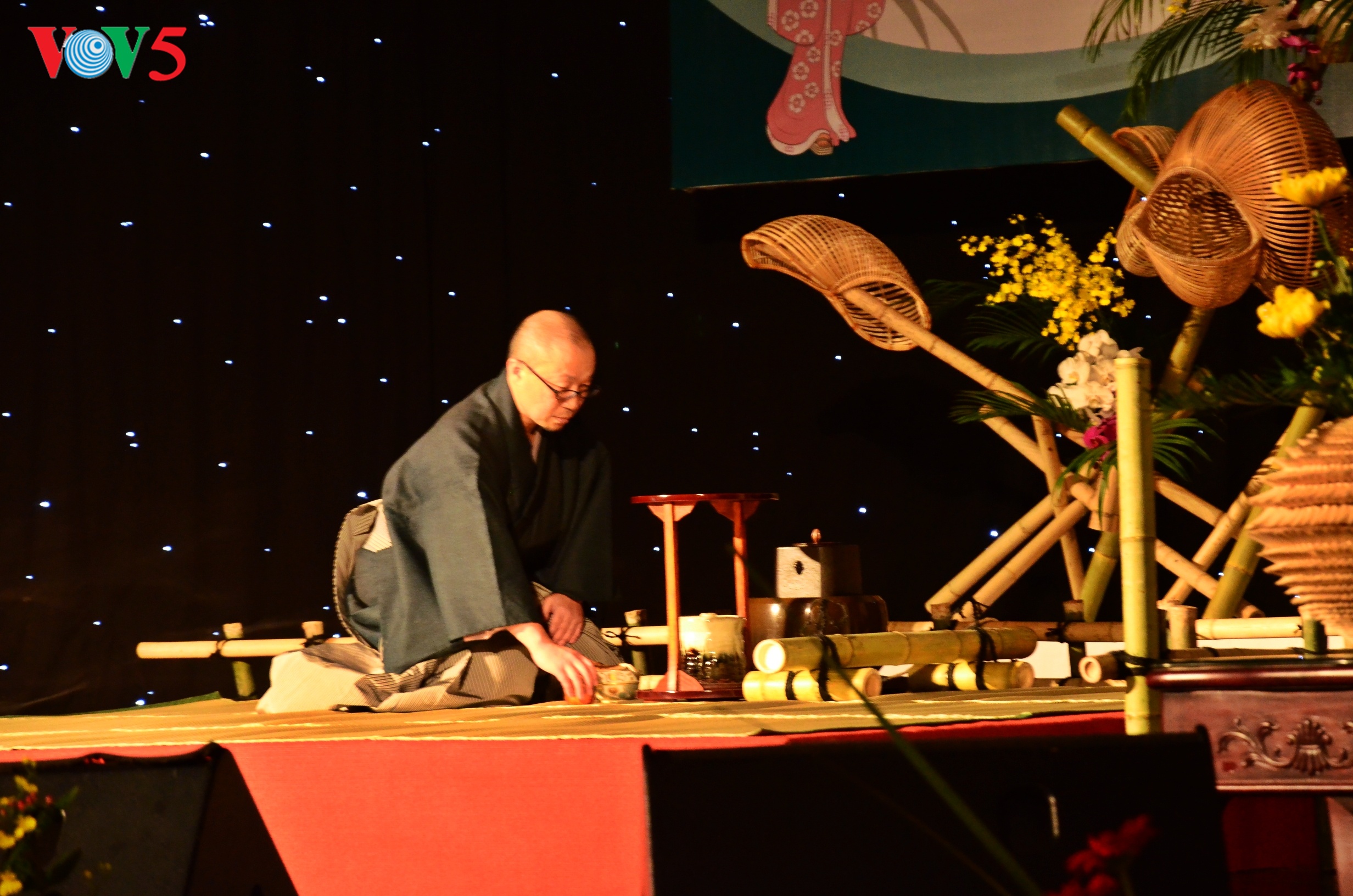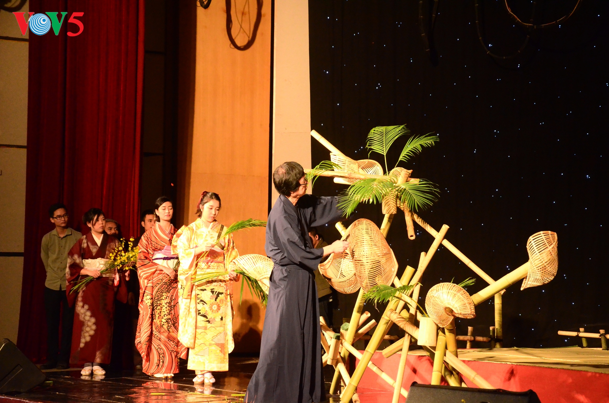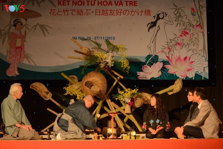 (VOVworld) - Program temu pergaulan kebudayan Vietnam – Jepang dengan tema “Jembatan persahabatan yang dikaitkan dengan bunga dan bambu” diadakan di Gedung Teater Radio Suara Vietnam (VOV), kota Hanoi, Kamis (26/11). Program ini memperkenalkan kepada rakyat dua negeri berbagai ciri budaya tradisional Vietnam dan Jepang seperti seni merangkai bunga, upacara menyajikan teh Jepang dan seni musik rakyat tradisional Vietnam. Melalui itu turut meningkatkan saling pengertian antara dua negara.