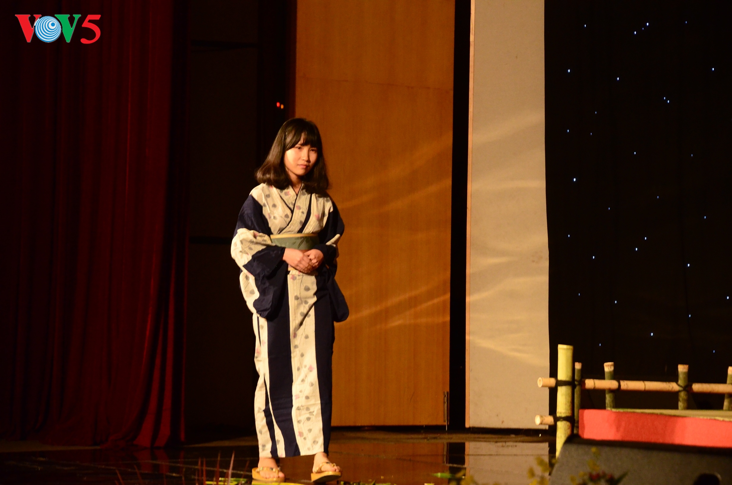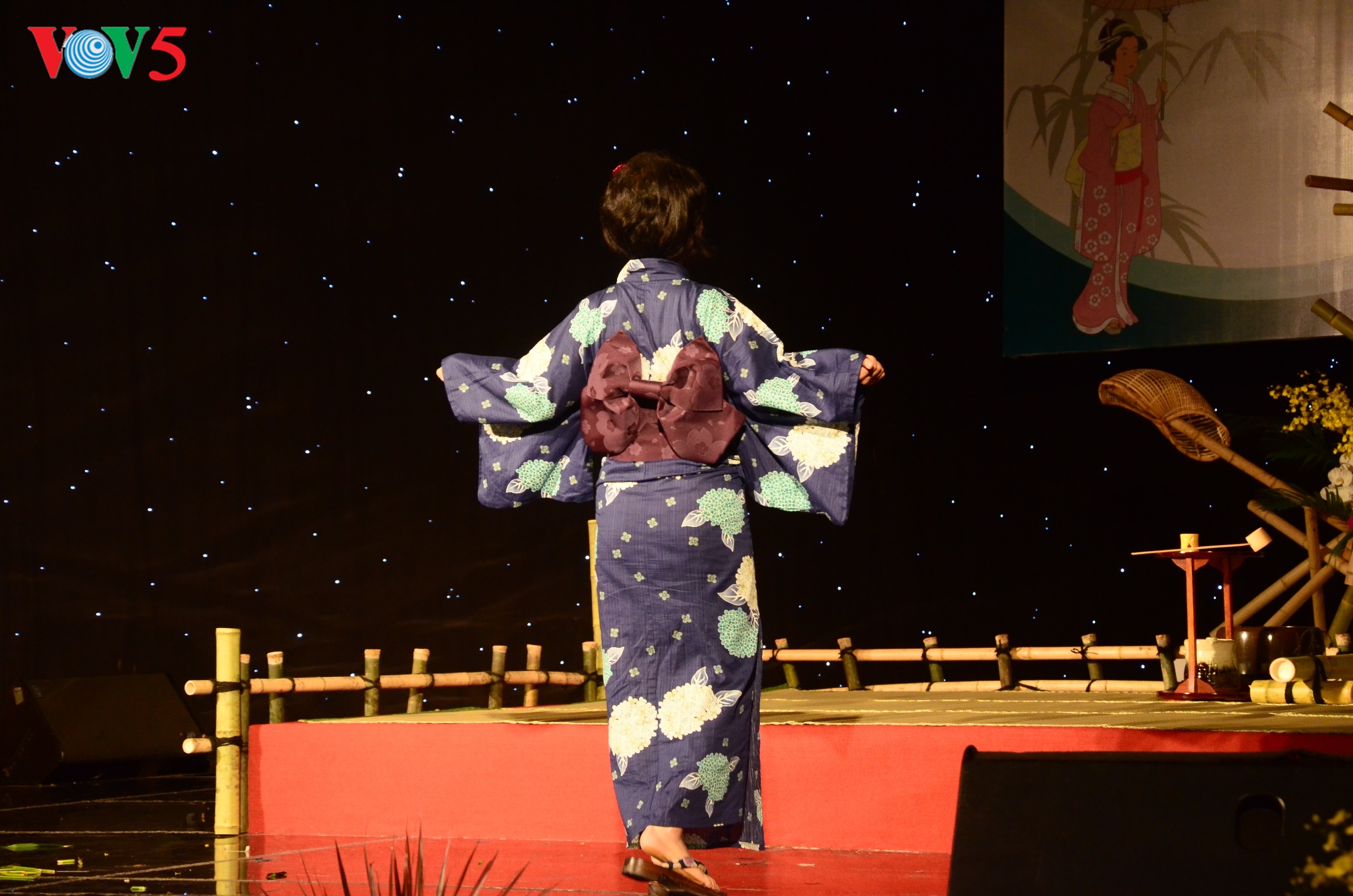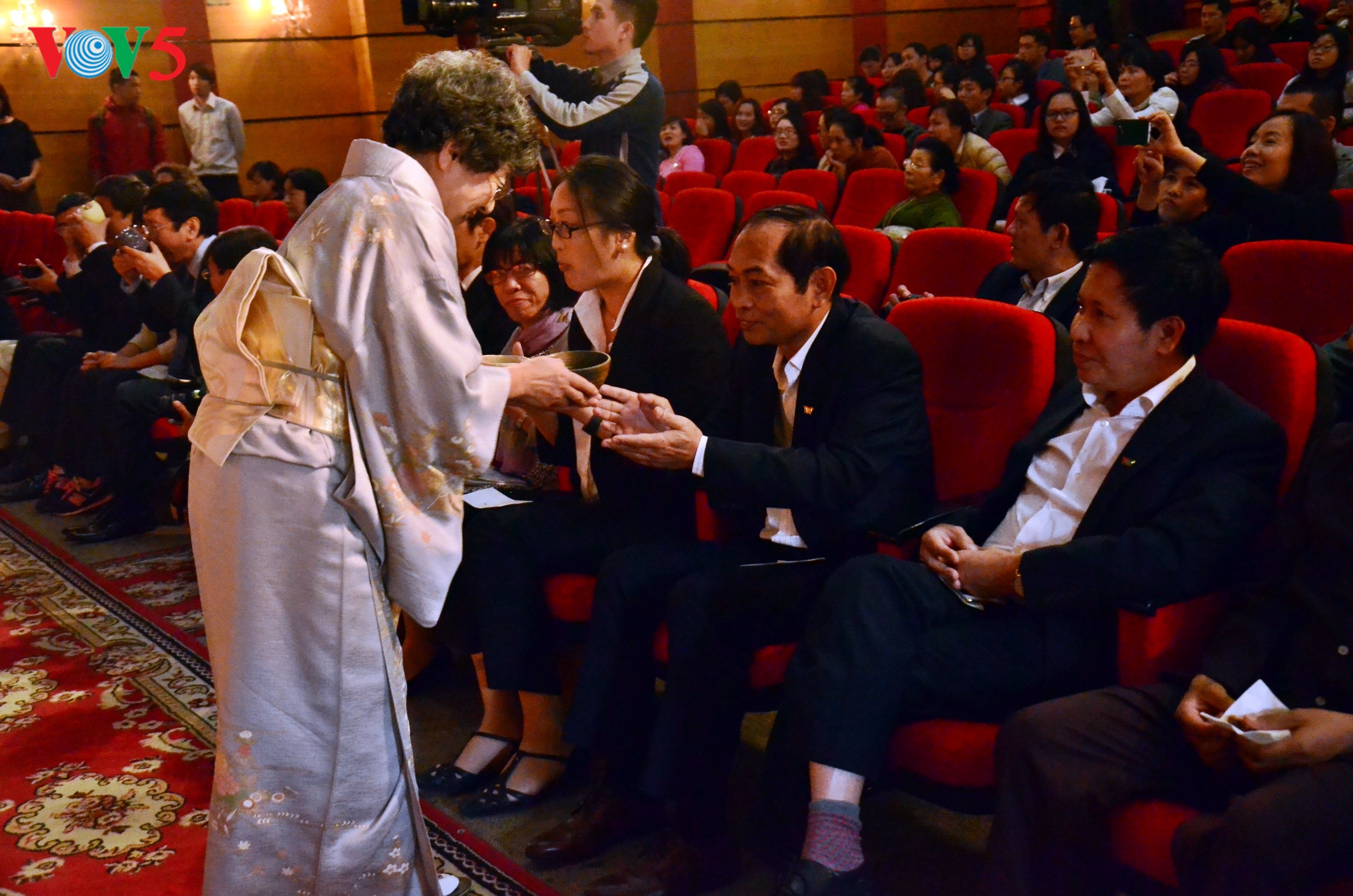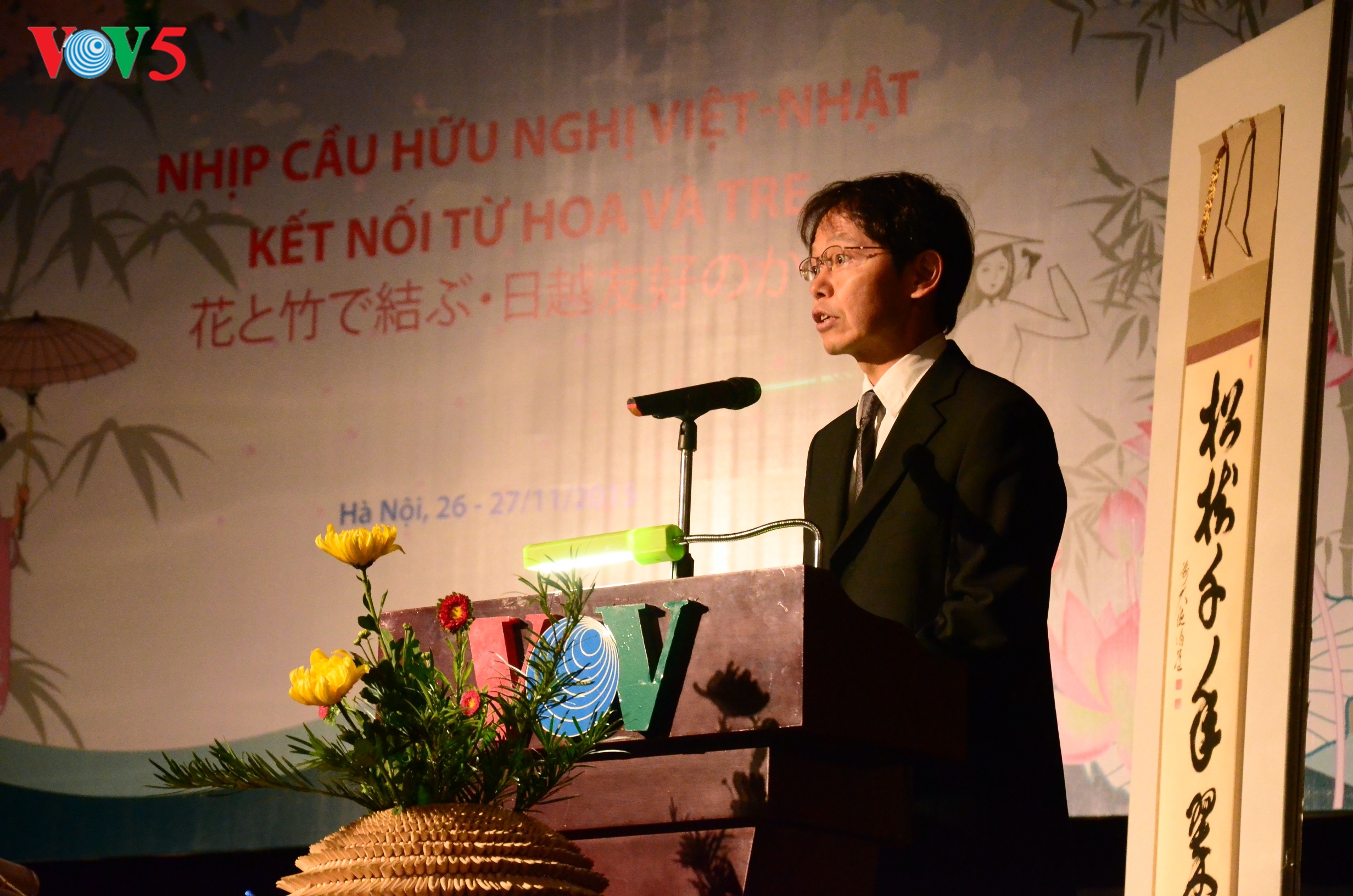 (VOVworld) - Program temu pergaulan kebudayan Vietnam – Jepang dengan tema “Jembatan persahabatan yang dikaitkan dengan bunga dan bambu” diadakan di Gedung Teater Radio Suara Vietnam (VOV), kota Hanoi, Kamis (26/11). Program ini memperkenalkan kepada rakyat dua negeri berbagai ciri budaya tradisional Vietnam dan Jepang seperti seni merangkai bunga, upacara menyajikan teh Jepang dan seni musik rakyat tradisional Vietnam. Melalui itu turut meningkatkan saling pengertian antara dua negara.