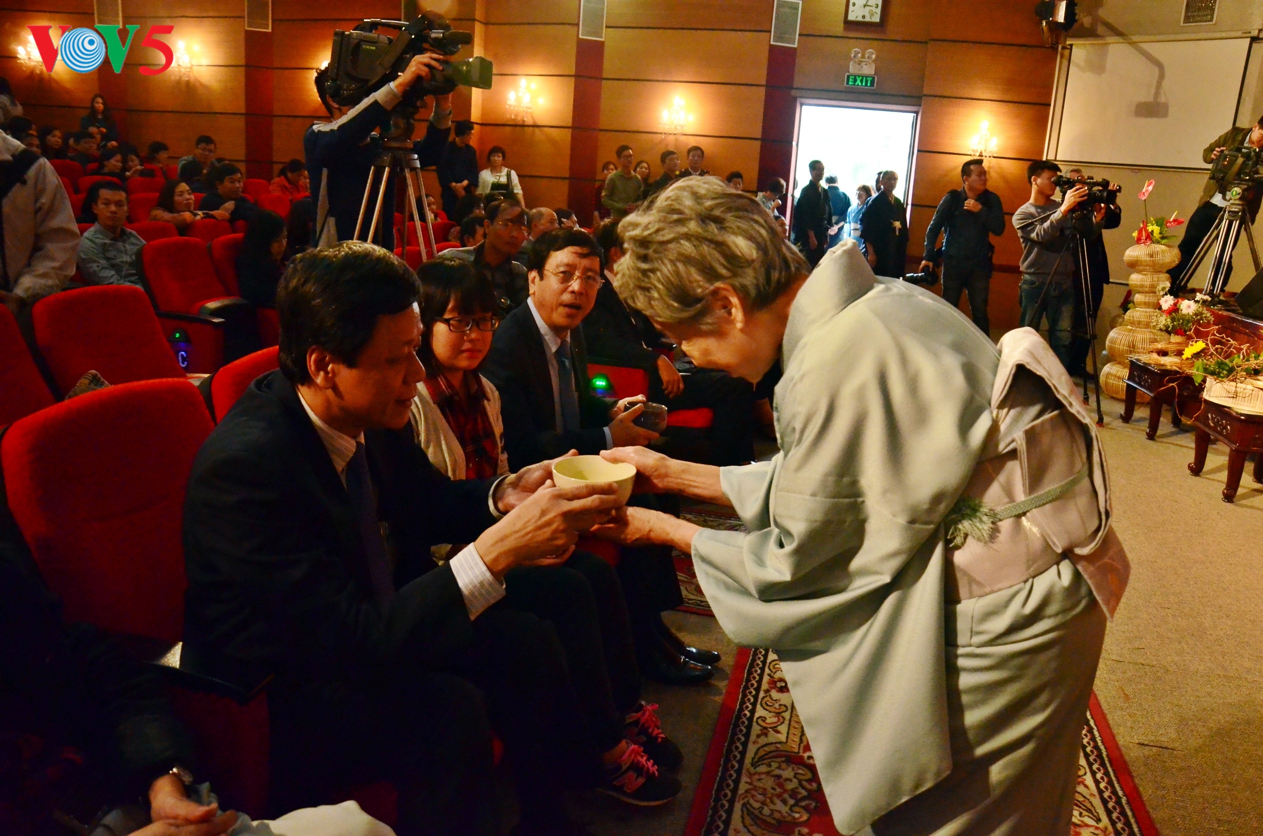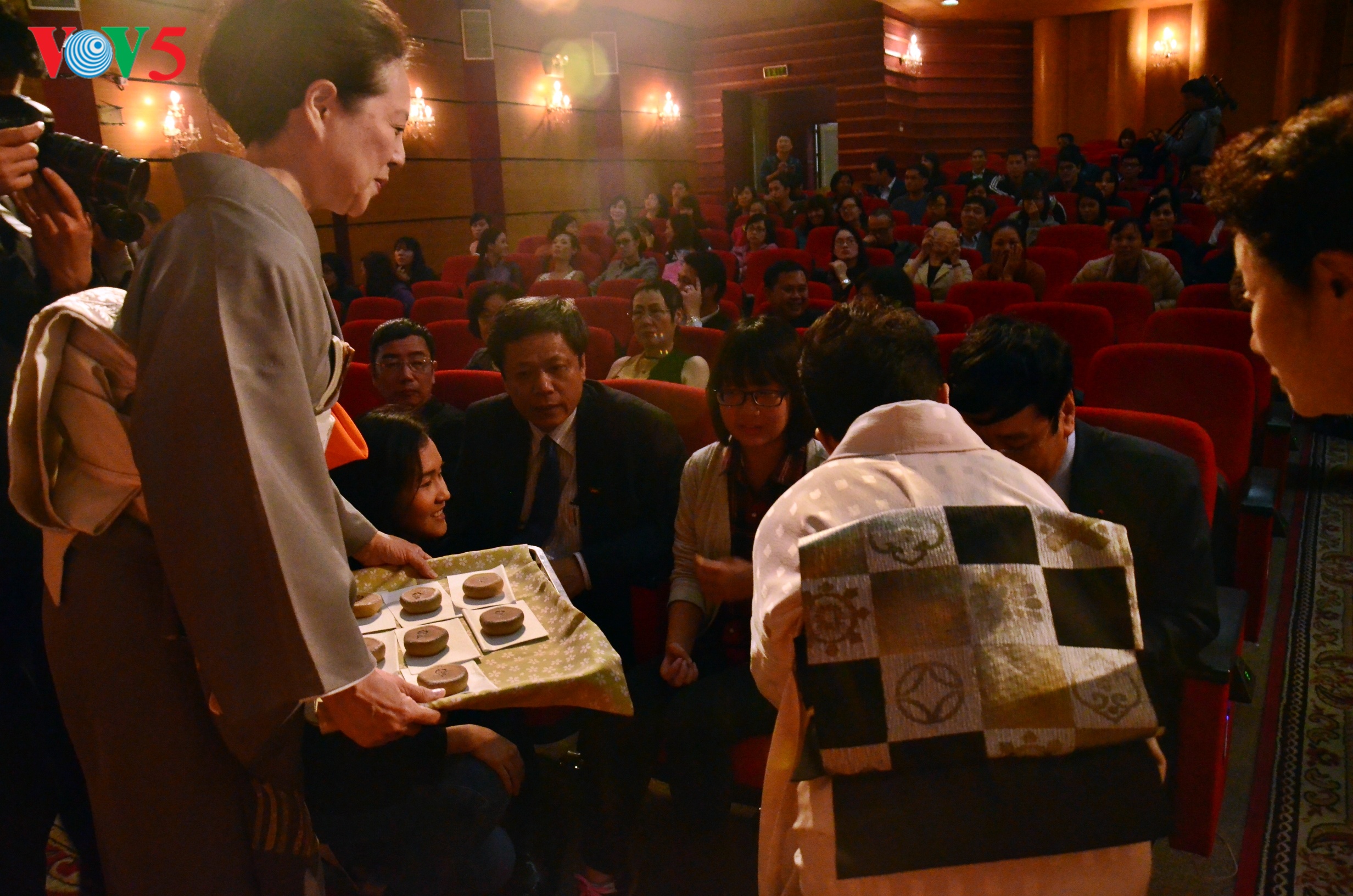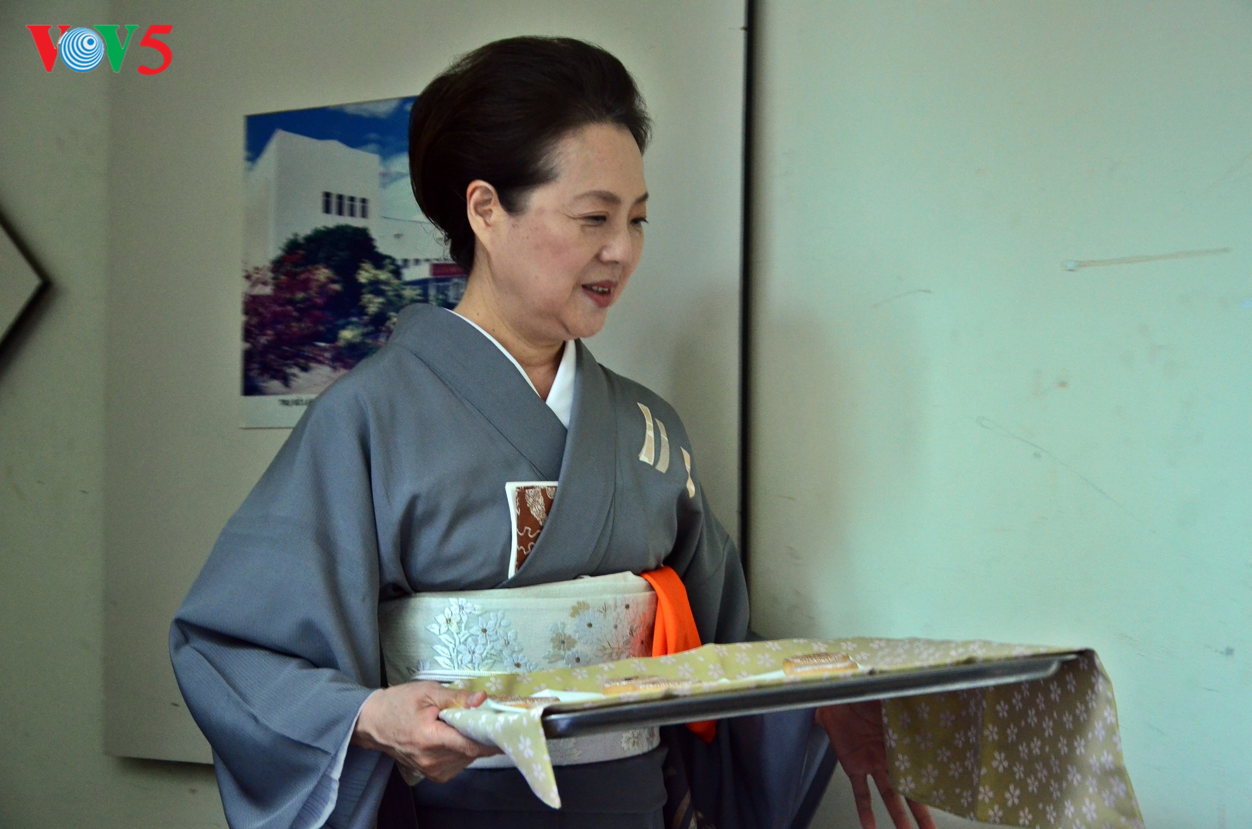 | Para pejabat VOV menyaksikan cara membuat teh tradisional Jepang. |