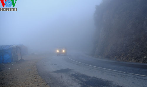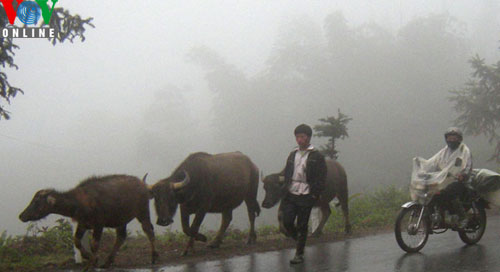 Penduduk Sapa tetap bekerja dalam cuaca dingin
