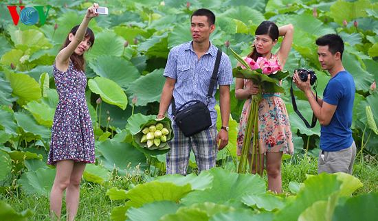 (VOVworld) - Setiap tahu, pada musim bunga teratai bermekaran, di daerah danau pembudi-dayaan bunga teratai di dana Tay, ibukota Hanoi menjadi semarak dengan kedatangan banyak orang. Mereka ada yang datang melihat, membeli ataupun memilih tempat ini untuk berkumpul dan mengambil foto bunga teratai yang pada saat-saat yang paling indah dalam tahun.