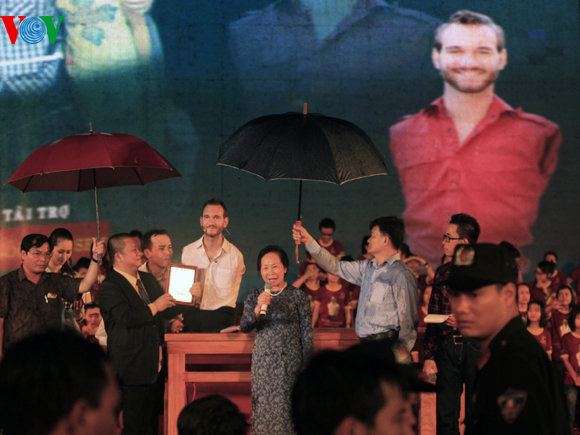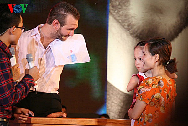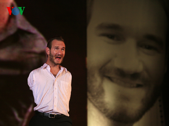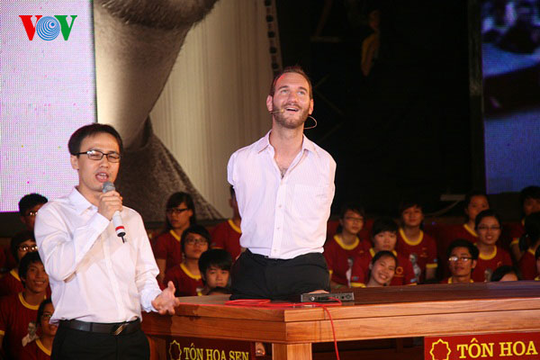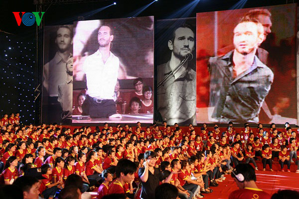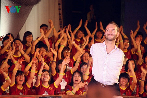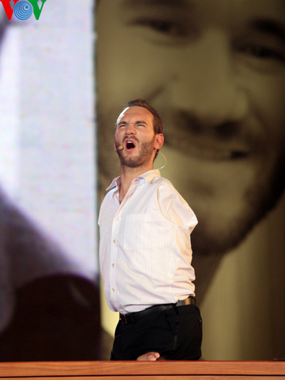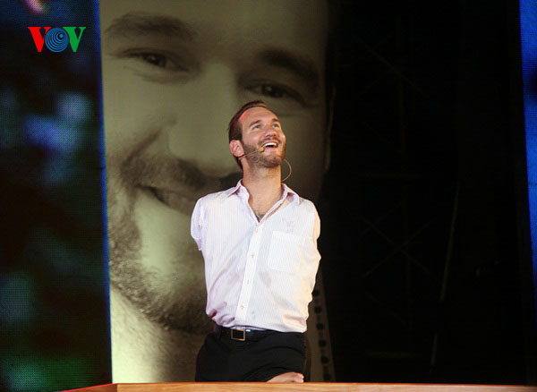 (VOVworld) - "Jangan pernah putus asa. Selama tidak putus asa berarti Anda masih punya harapan". Demikian pesan yang disampaikan Nick Vujivic kepada kalangan pemuda Vietnam dalam kunjungannya di Vietnam. Lahir dalam keadaan yang tidak utuh, tanpa tangan dan kaki, Nick Vujivic sudah menderita banyak kesulitan, tapi dia tidak pernah putus asa dan selalu percaya diri. Datang di Vietnam kali ini, dia telah menyampaikan semangat hidupnya kepada generasi supaya jangan pernah melepaskan harapannya, selalu berusaha mencapai impian dan percaya diri.