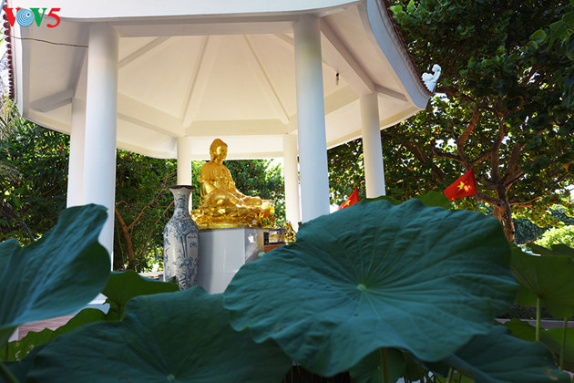 Pagoda Linh Son di pulau Son Ca berlokasi di dekat pantai